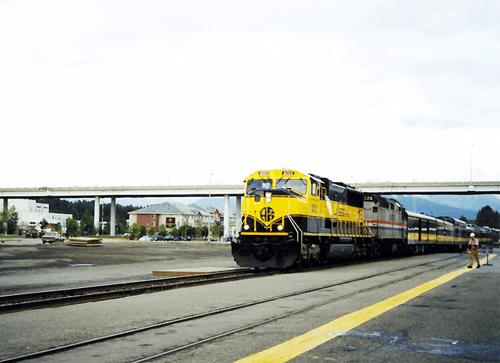 しばらくキングサーモンを眺めた後 すぐ側の駅に1日1本の列車が到着するとのことで向かってみた