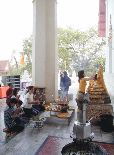 多くの人々の祈りの場となっている Wiharn Phra Mongkhon Bopit