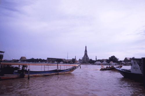 Mae Nam Chaopraya の向こうに 高くそびえ立つ仏塔が見えた