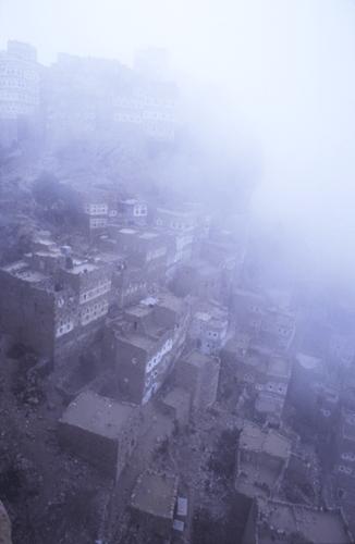 高地のため 雲に覆い隠された旧アラブ人地区市街より