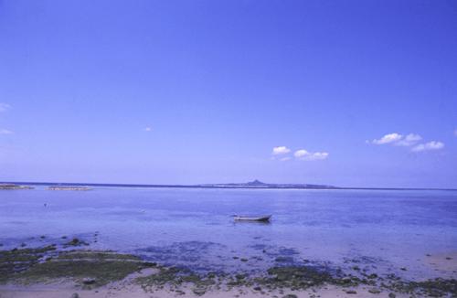 ちょうど目線の向こうに 真っ青な海に浮かぶ久高の島影が飛び込んできた