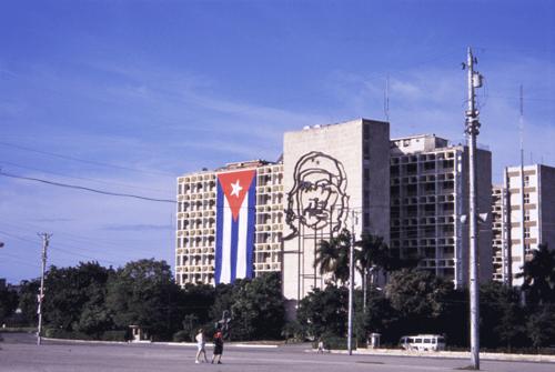 広場のすぐそば 内務省の壁に備え付けられた英雄チェ・ゲバラの肖像は