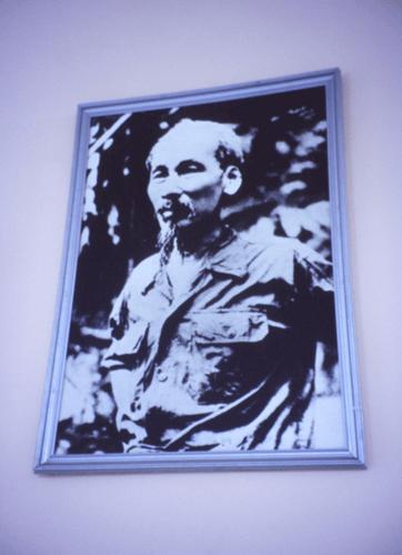 正面に飾られたホーチミンの肖像が 力強く微笑んでいた