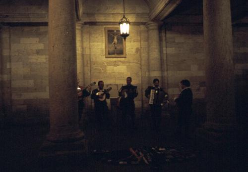 再び教会へと向かうと ライトアップされた建物の下で音楽を演奏する人々に出逢った