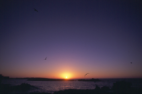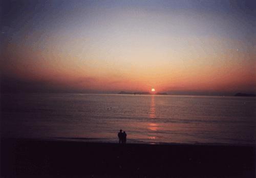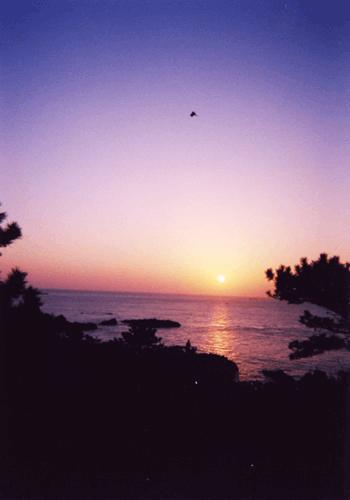 夕方、食事の前に夕日を眺め、早朝、早起きをして朝日のよく見える灯台の下でその瞬間を待つ。