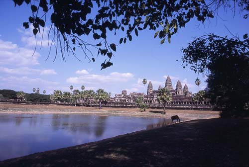 アンコールワットを望む 池のほとりのガジュマルの木の下に分骨され 今も安らかに眠っているという