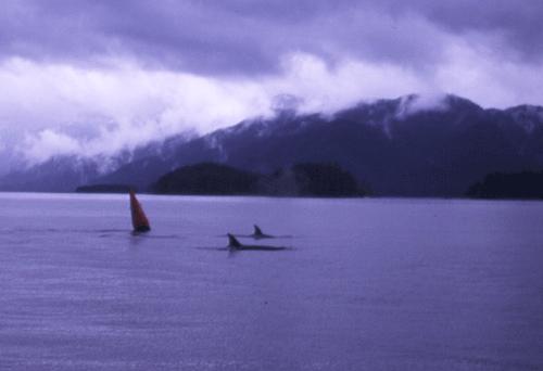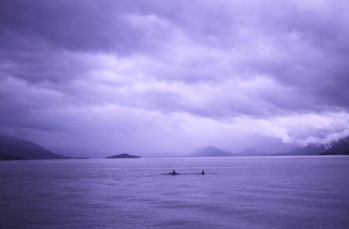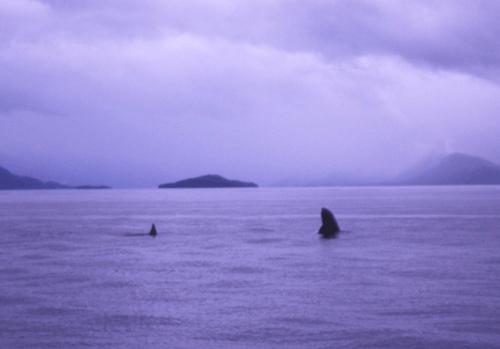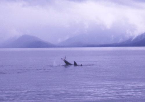 Juneau の港へ帰る途中、 偶然オルカの家族に出逢った